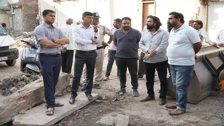 कलेक्टर श्री सिंह और नगर निगम आयुक्त श्री मिश्रा ने केडी गेट,ढाबा रोड मार्ग चौड़ीकरण और रीगल टॉकीज के प्रगतिरत निर्माण कार्यों का निरीक्षण किया